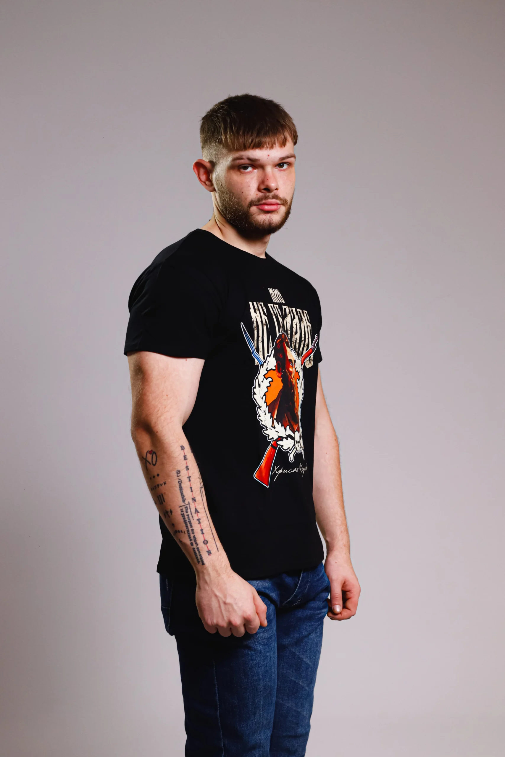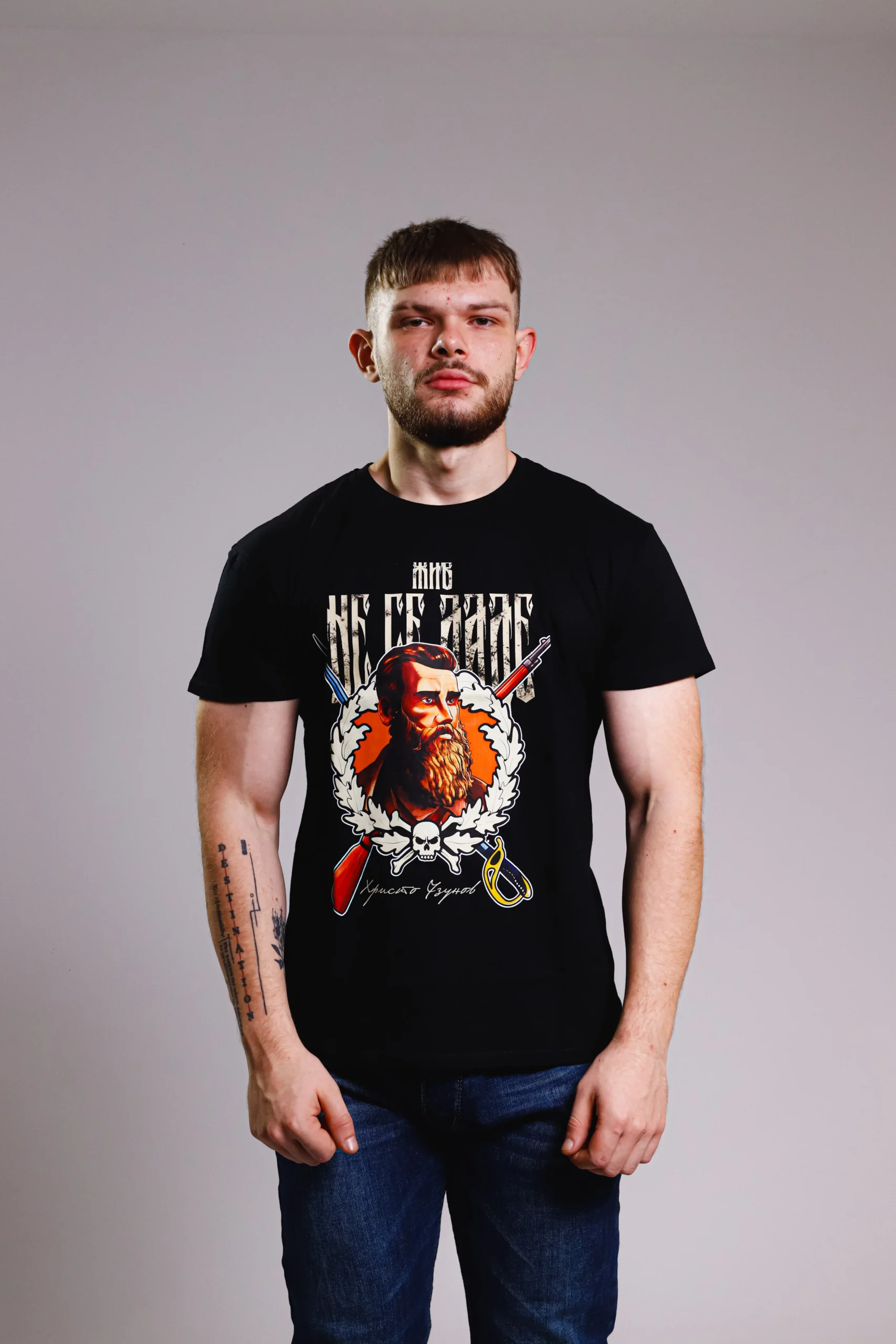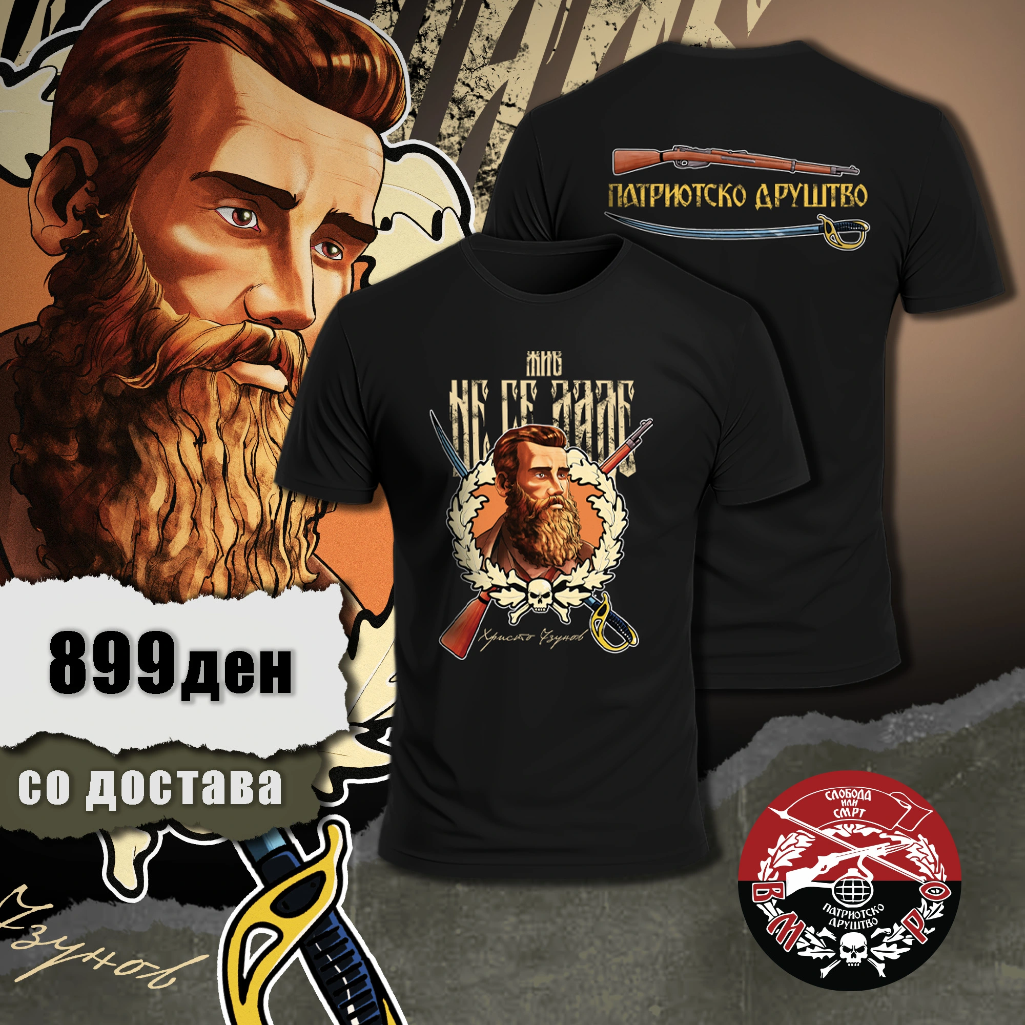 ⚔️👕 Жив не се даде! Маицата „Узунов“ е посветена на охридскиот војвода кој сиот живот го посветил на борбата за слободна Македонија. Дури и во последните, завршните, моменти на неговиот живот, тој избрал да не се предаде жив на непријателот. Маицата има патриотски мотиви на предната и задната страна