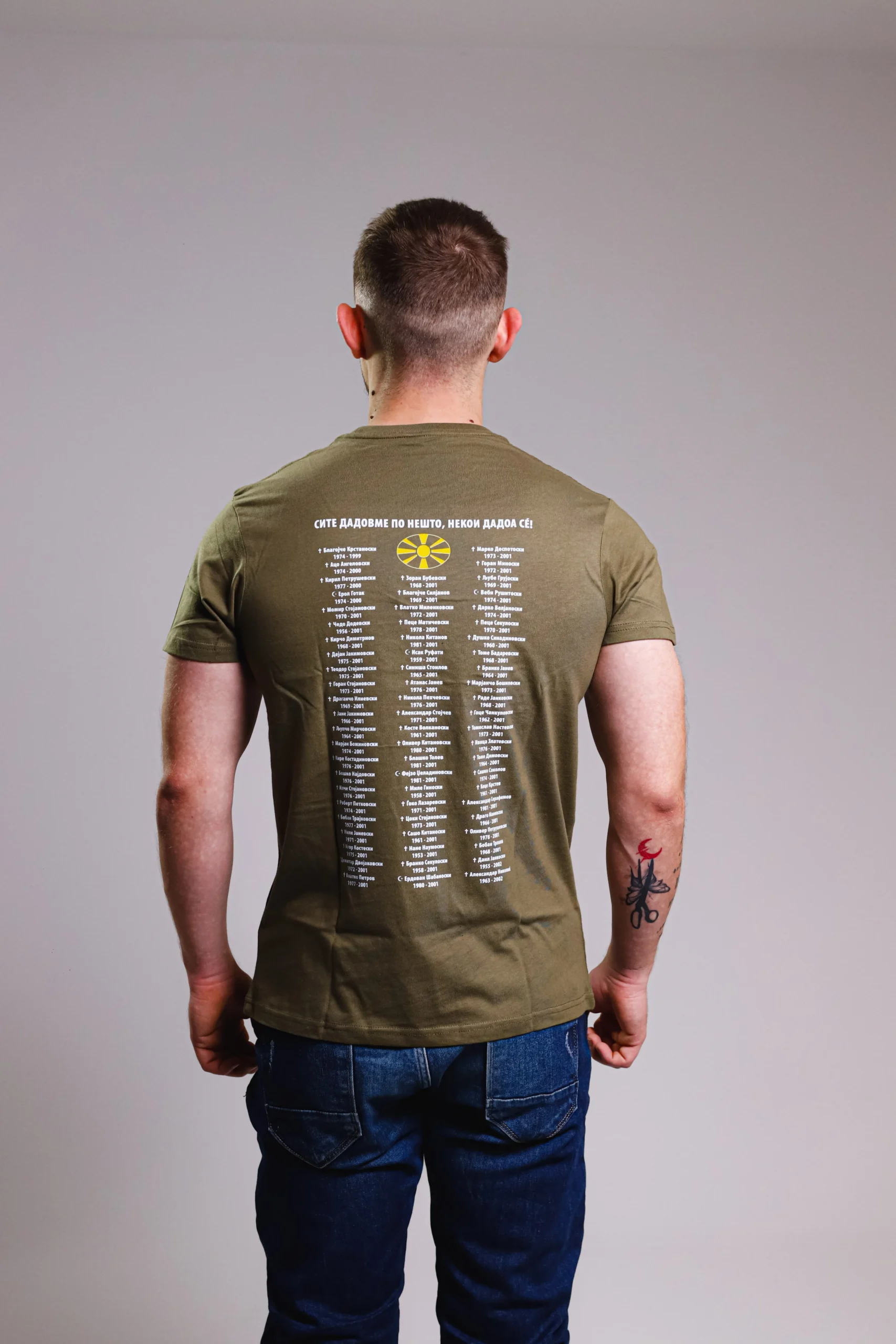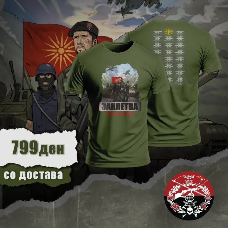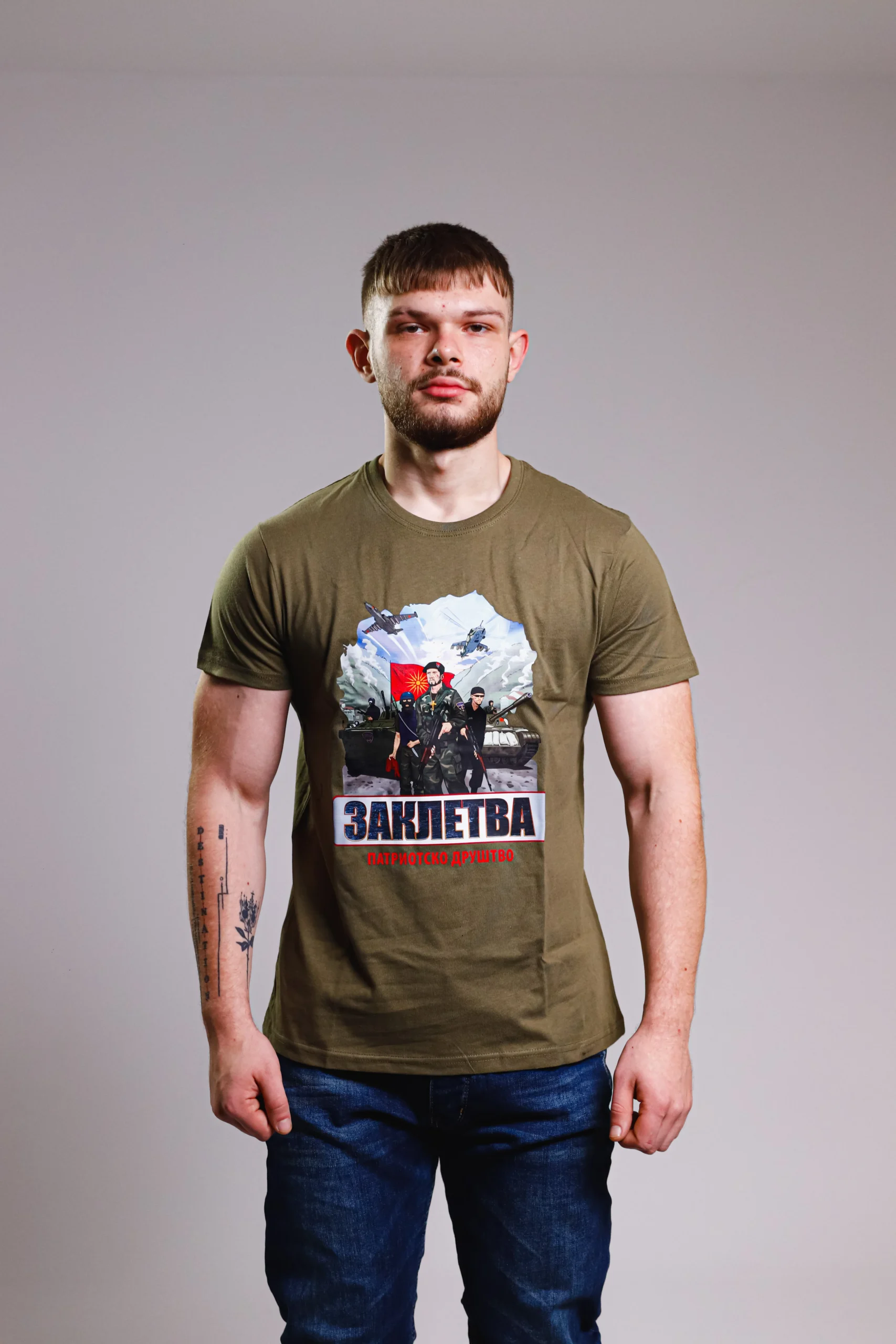 👕 Маица „Заклетва“ посветена на хероите од 2001 година! Покрај книгата „Заклетва“ ја пуштивме во продажба и маицата со исто име. Маица која е направена во чест на бранителите. На предната страна се наоѓа истиот мотив кој е на насловната страна на книгата, додека пак од задната страна се испишани имињата на бранителите кои ги положија животите во конфликтот.