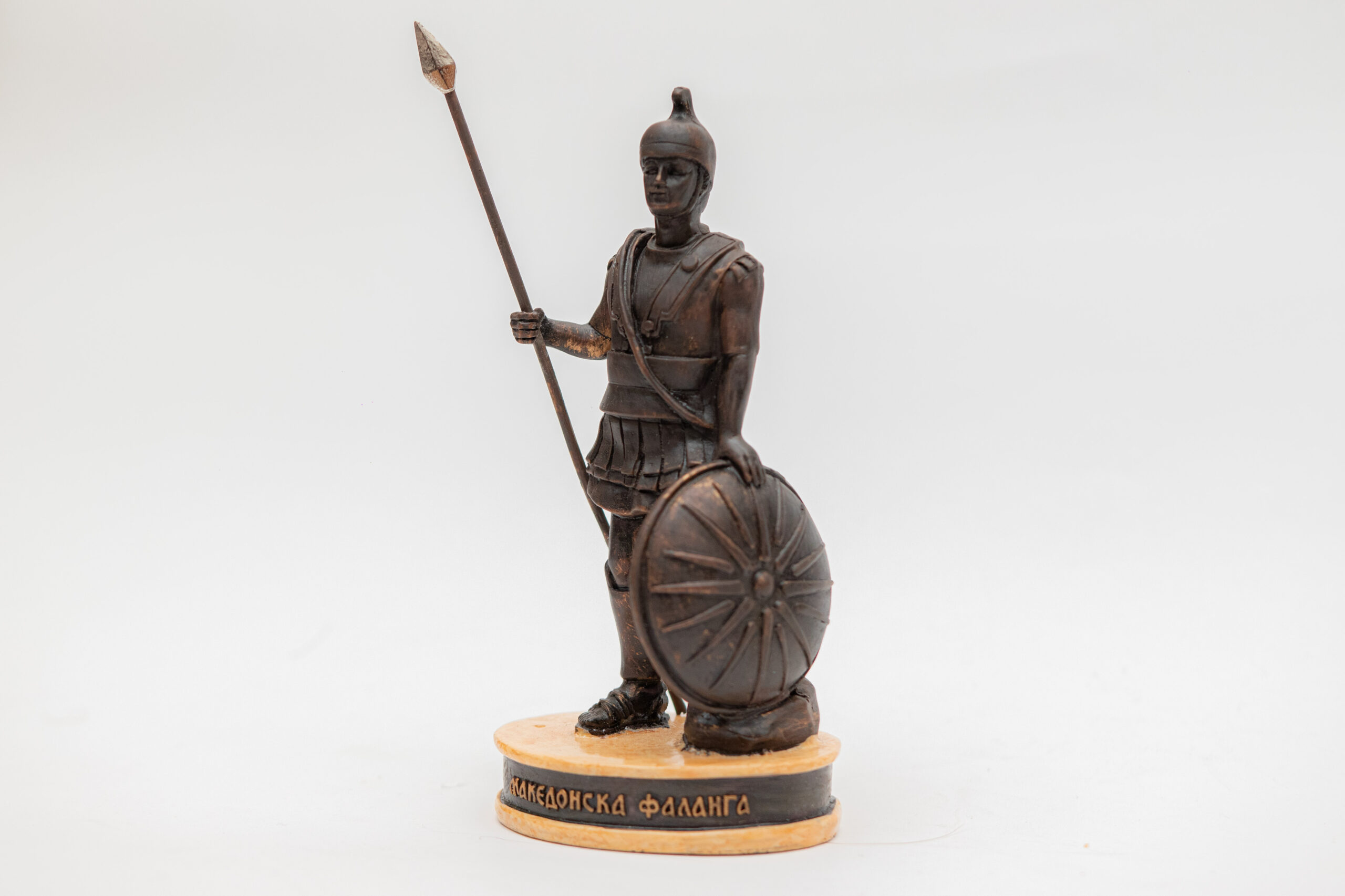 Инспирирана од легендарната македонска фаланга, оваа скулптура ја доловува дисциплината и силата на античките воини. Идеална за колекционери и љубители на воена историја.